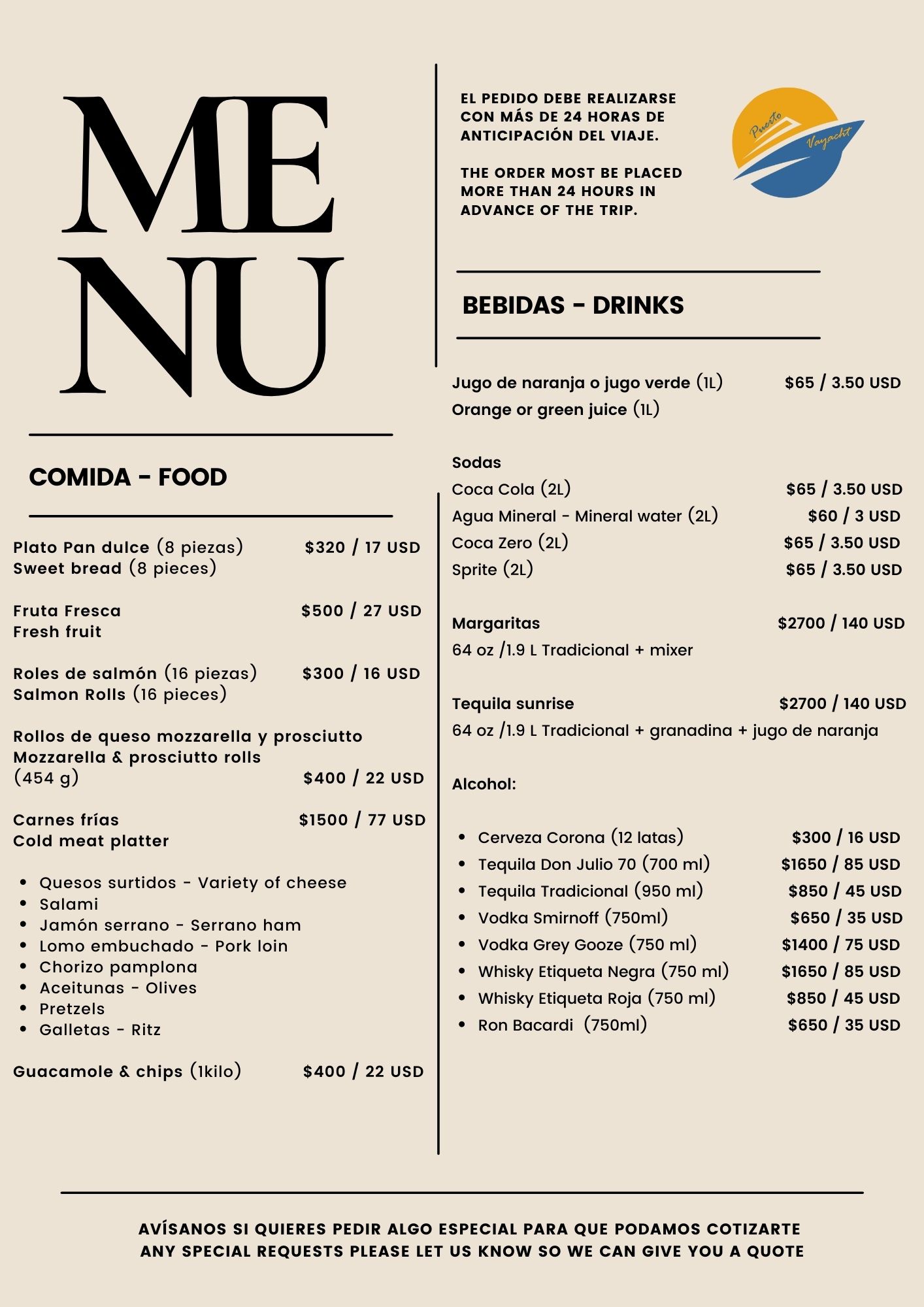* Service depends on the number of people on board and the duration of the trip.